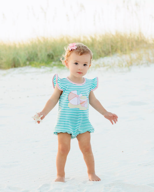 Paty Pinstripe Angel Sleeve Bubble, Pima Trim