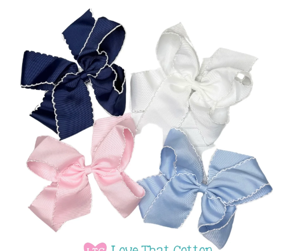The 5-Inch bow with alligator clip is a versatile and charming accessory that adds a touch of elegance to any outfit. This bow is available in a range of sweet colors including: white, light blue, navy and pink. Each shade is picked to match our existing line, to create a cohesive look. The alligator clip on the back of the bow makes it easy to attach to various hairstyles, such as ponytails, braids or simply clipped on the side for a chic look. Wear it as it is or add a monogram for a custom touch. This is sure to be a staple in every girls closet.