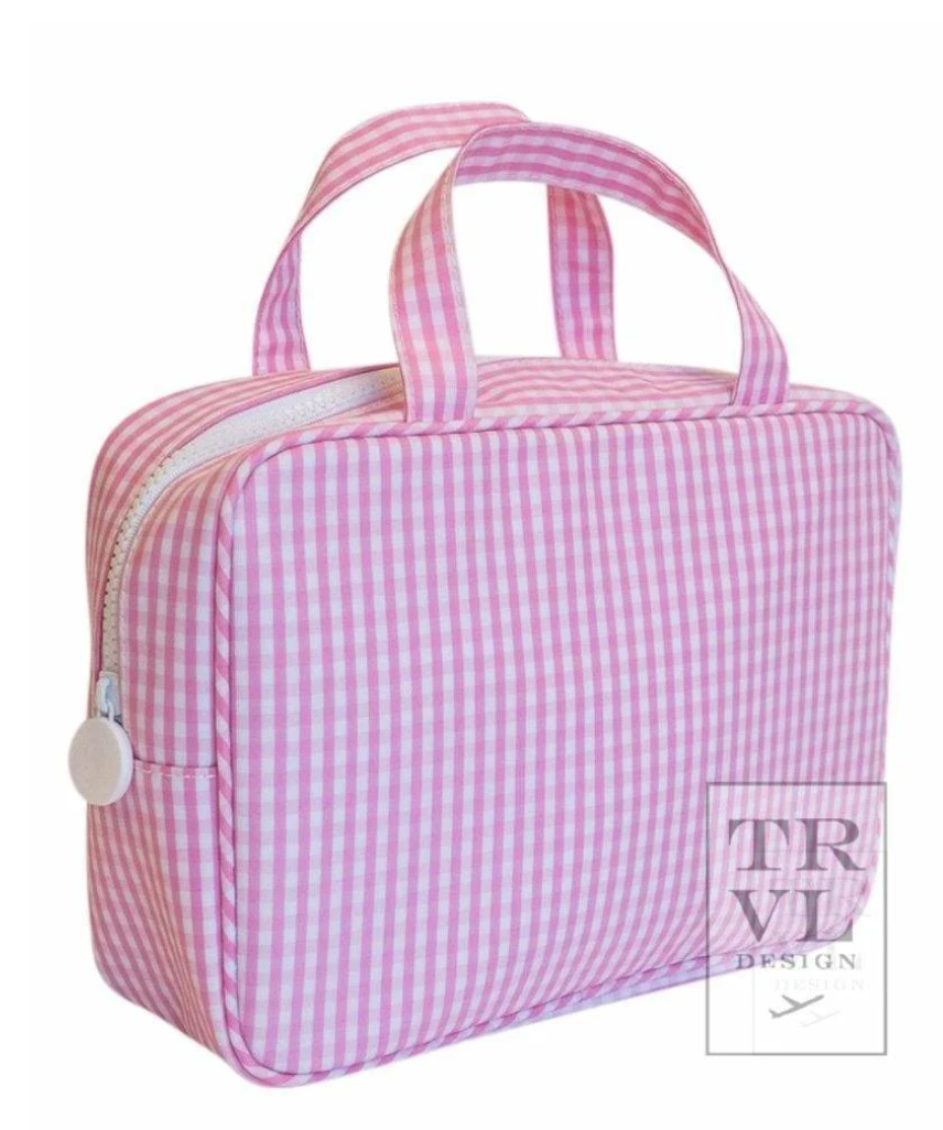 Keep calm and Carry On with our simple and practical TRVL bag. This cute top handle bag can be handy for popping in your liquids and essentials, an easy to grab-n-go as a day bag for a baby, a lunch bag, a cosmetic bag, or a great bag for your book club! The soft outer case and lining will ensure everything to stay safe with an interior zipper pocket and full slip pocket for storage.