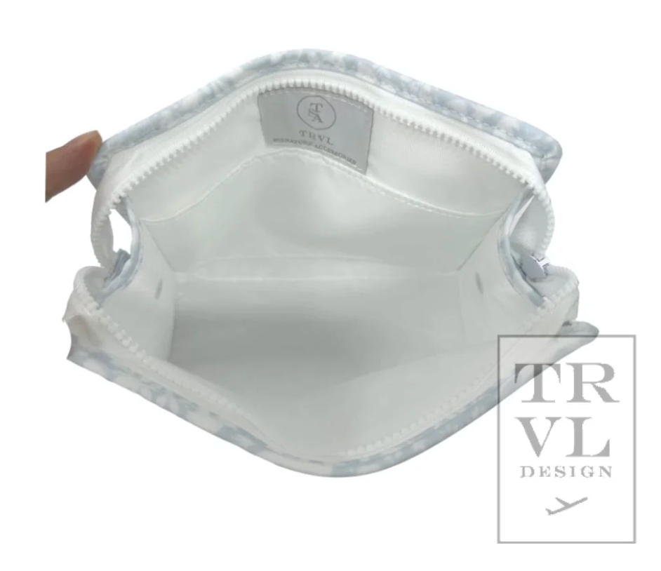 The best-selling Roadies are our BFFs in the pouch world! The Large Roadie is made in a cotton gingham with a thin Eco-friendly matte coating, an inside slip pocket and exterior snap open zip tabs for a wider opening and an easier access.