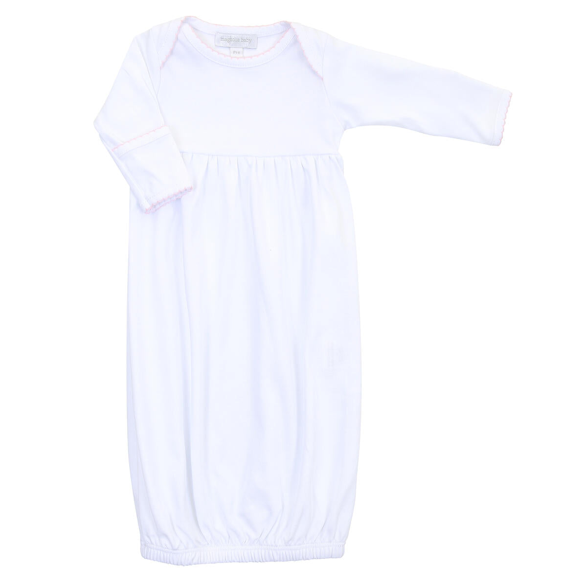Crafted from 100% Pima Cotton, the Magnolia Baby Light Blue Trim Gown offers unparalleled softness and comfort for your little one.