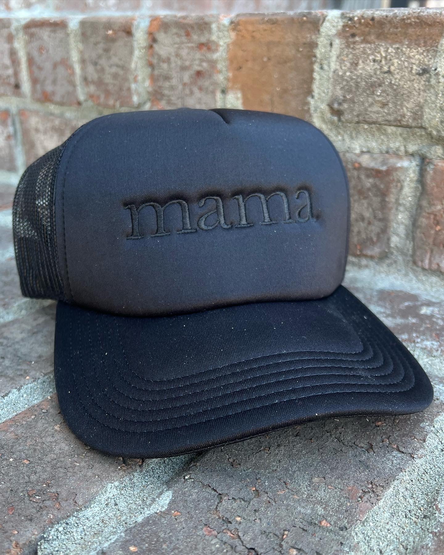 This classic black Mama Trucker Hat is perfect for the fashionable mama on the go. Its monochromatic look is sure to add an effortless sense of style to any outfit. Enjoy the look and comfort of this timeless piece.
