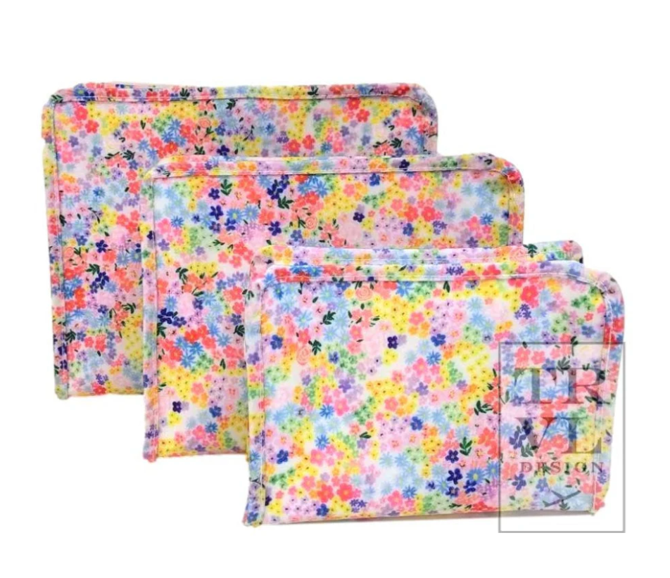 The best-selling Roadies are our BFFs in the pouch world! The Large Roadie is made in a cotton gingham with a thin Eco-friendly matte coating, an inside slip pocket and exterior snap open zip tabs for a wider opening and an easier access.