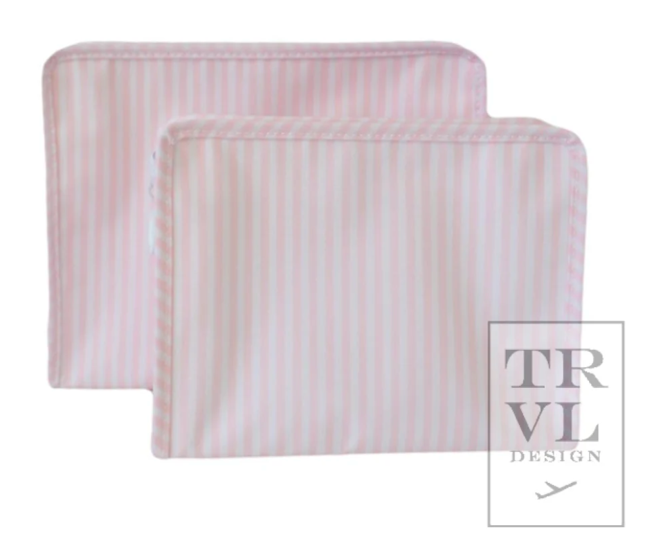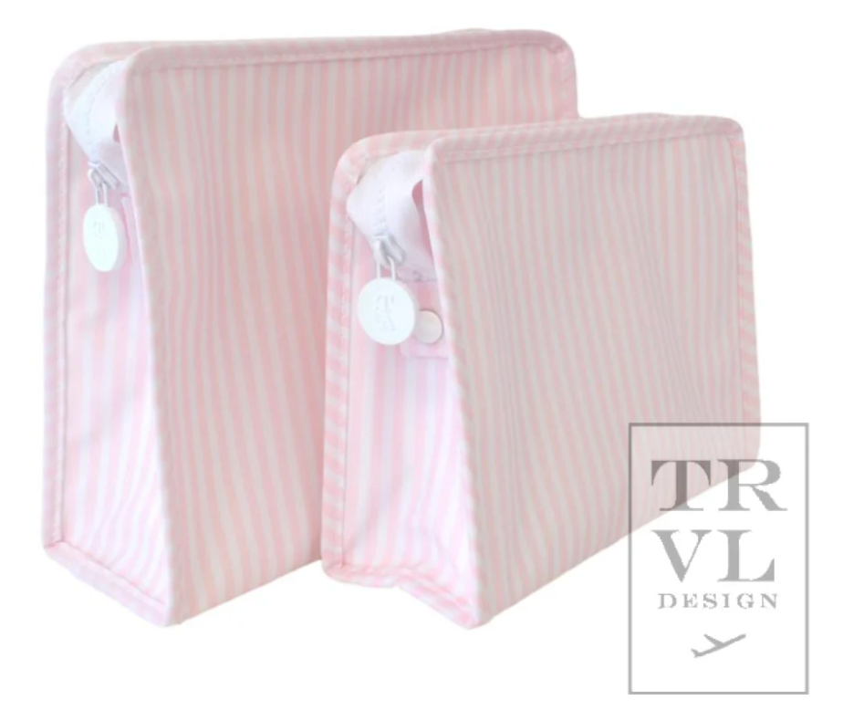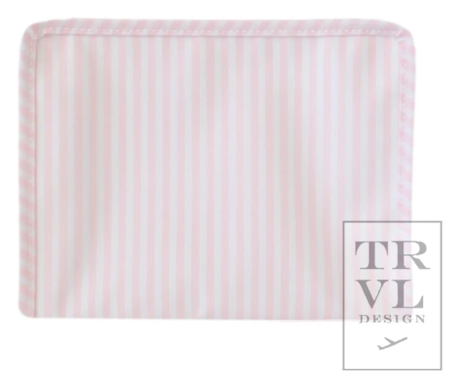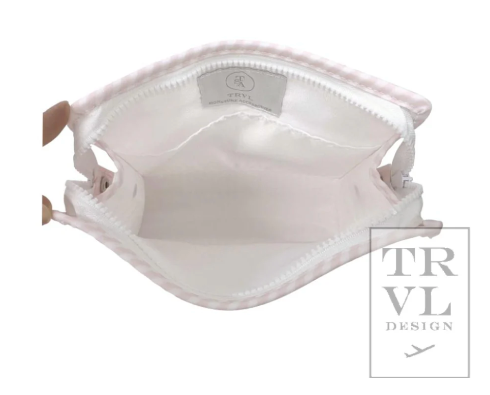 The best-selling Roadies are our BFFs in the pouch world! The Large Roadie is made in a cotton gingham with a thin Eco-friendly matte coating, an inside slip pocket and exterior snap open zip tabs for a wider opening and an easier access.