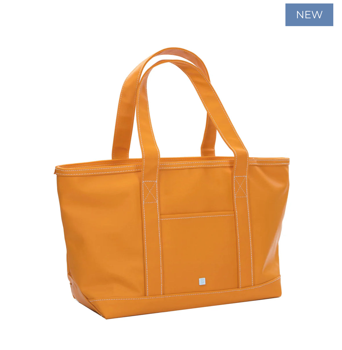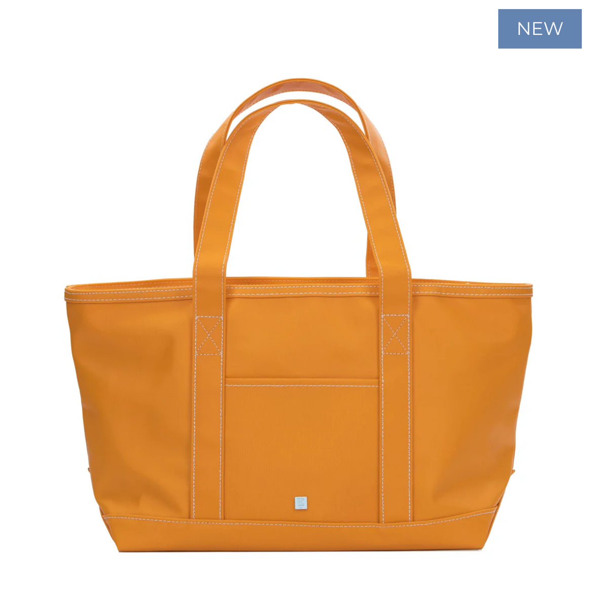 Our New Midi Tote in coated canvas - is perfect for day-to-day, beach, groceries, and getaways. This roomy interior can carry a 17" laptop, change of clothing and our other TRVL accessories. Designed with double shoulder straps, front exterior pocket.