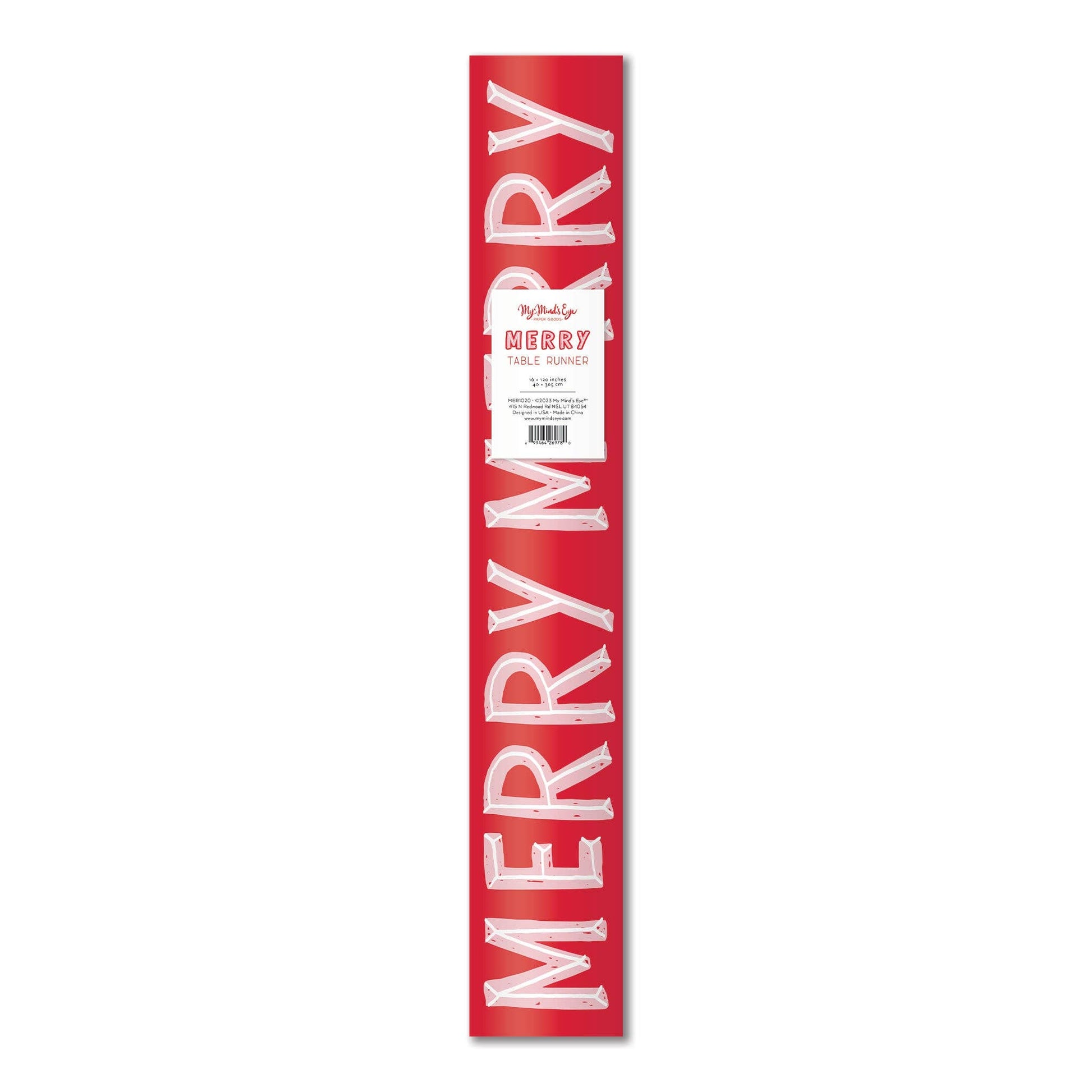 Set a merry table this Christmas with this merry table runner. Featuring bright and festive colors this table runner is the perfect way to add merriment to holiday festivities at your table this December. • 16 x 120 inch paper table runner