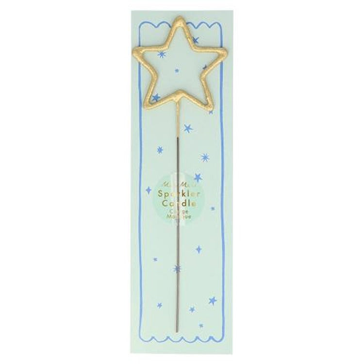 The Gold Sparkler Star Candle is a stunning addition to any celebration or event. This candle features a unique star shape and is adorned with gold sparkles that shimmer and shine when lit. The candle is perfect for birthdays, weddings, or any special occasion where you want to add a touch of elegance and glamour. It measures 4 inches in height and is made of high-quality wax that burns cleanly and evenly. Whether you use it as a centerpiece or as part of a decorative display, this Gold Sparkler Star Candle is sure to impress your guests and create a magical atmosphere. Make your next event truly special with this beautiful candle.