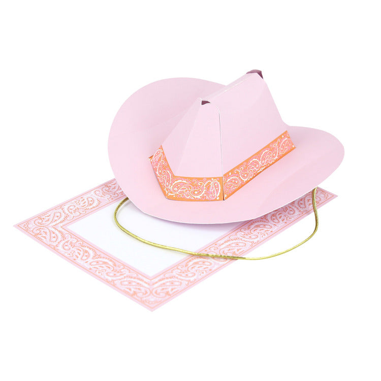 Celebrate a special birthday with this unique pop-up Western hat card! The card features a 3D pop-up design of a classic cowboy hat, perfect for any Wild West enthusiast. The intricate details and vibrant colors make this card a standout piece that will surely impress the recipient. Whether they're a fan of Western movies or just love a good cowboy hat, this card is sure to bring a smile to their face. Add a personalized message to make it extra special. Make their birthday extra special with this fun and festive pop-up card!