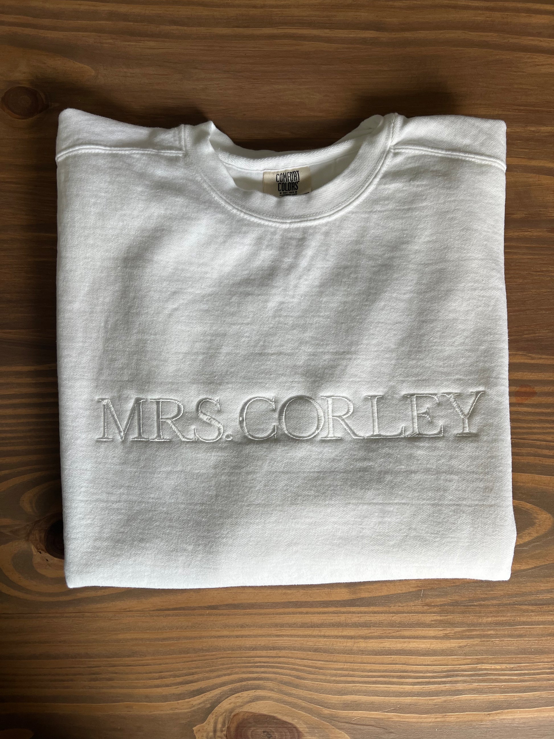 Make the Mrs. official with this comfy crewneck! Wearing this Comfort Colors custom embroidered crew will keep you toasty and make an unforgettable bachelorette or wedding gift!