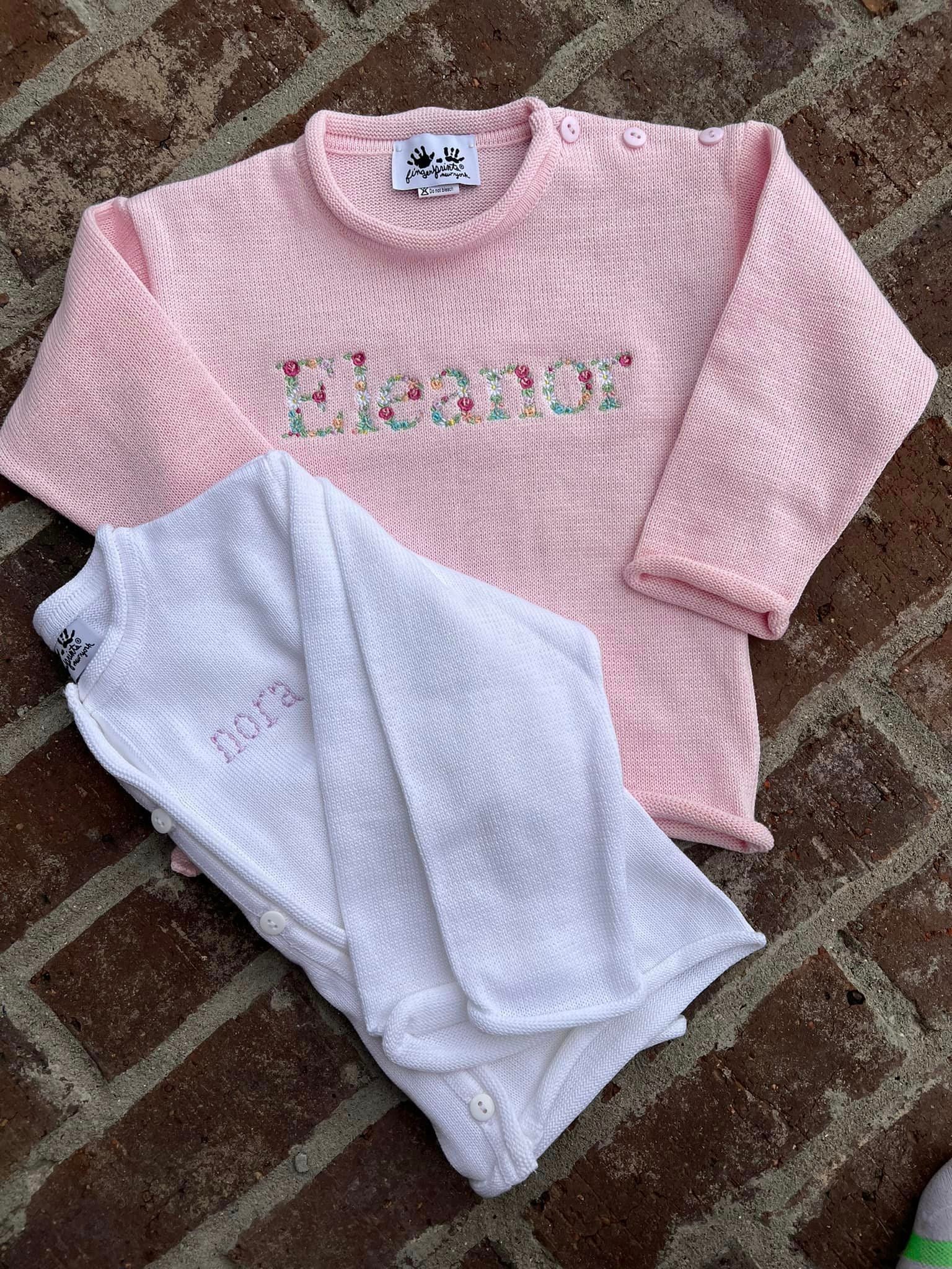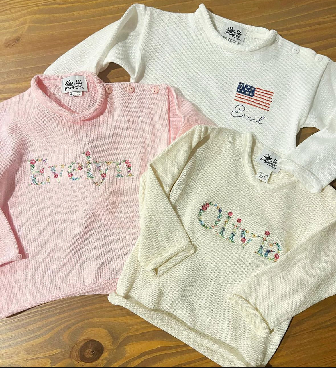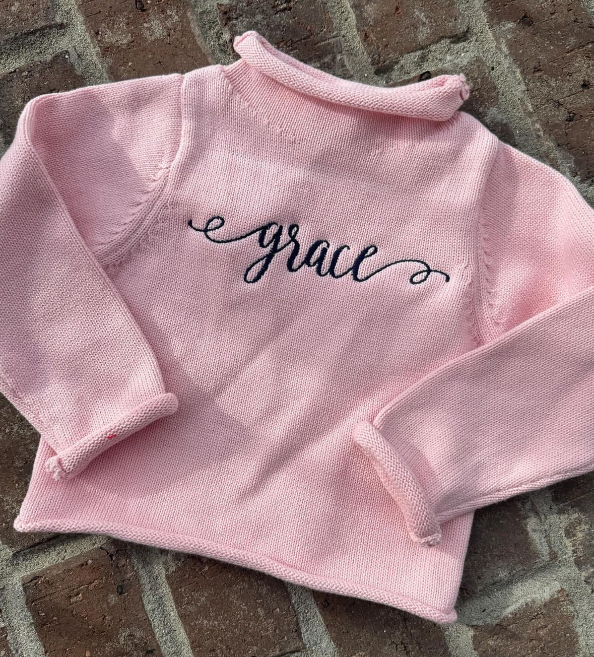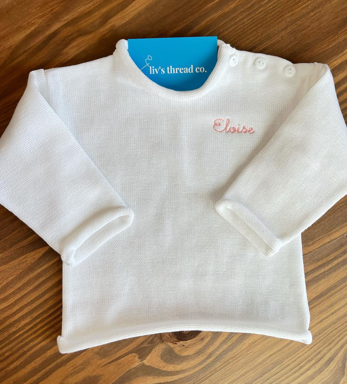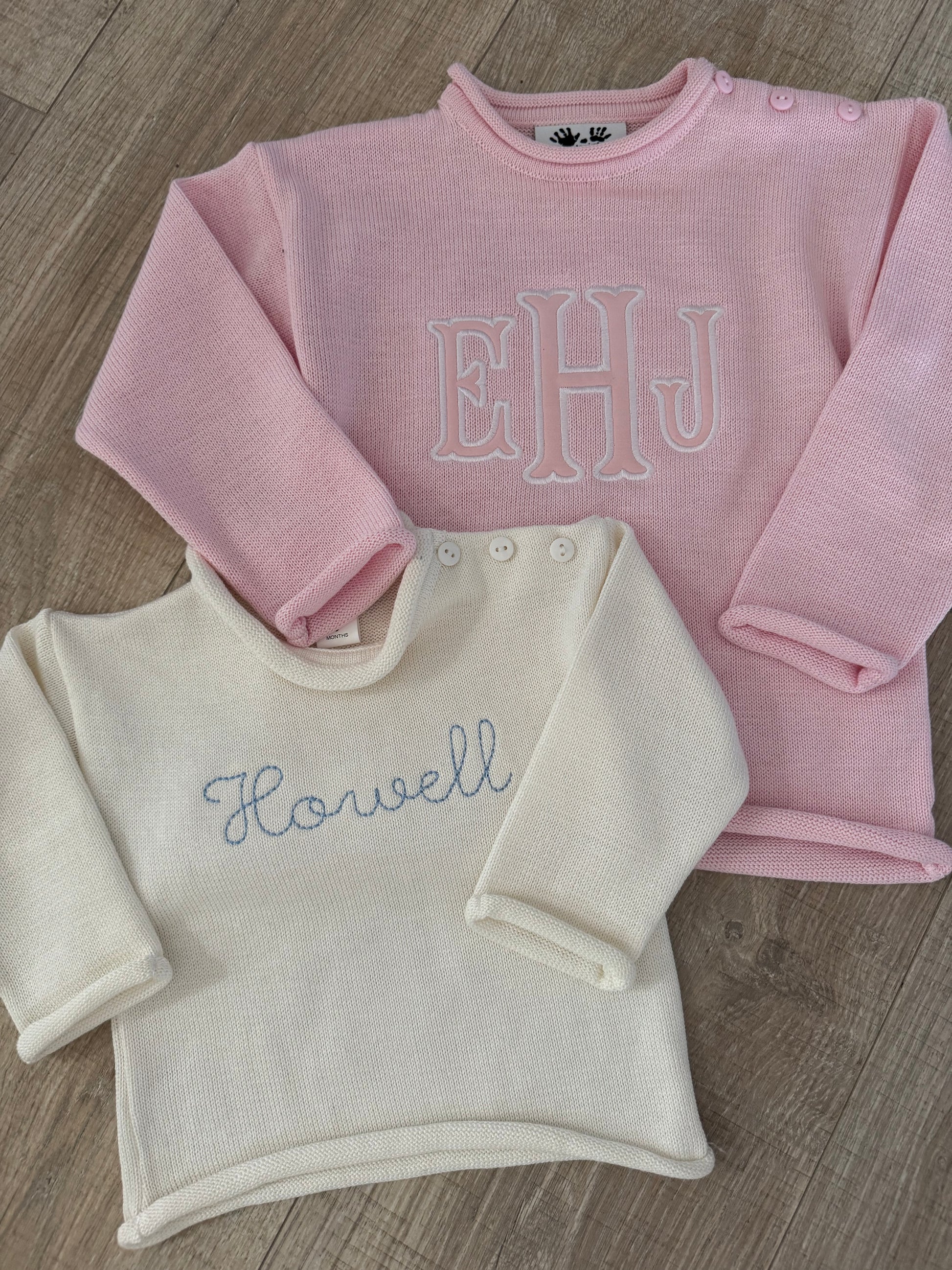 This lightweight roll neck sweater is perfect for kids and toddlers alike. It’s easy to personalize with your chosen color and design details and make for a beautiful keepsake. Keep them cozy, comfortable and stylish with this must-have piece.