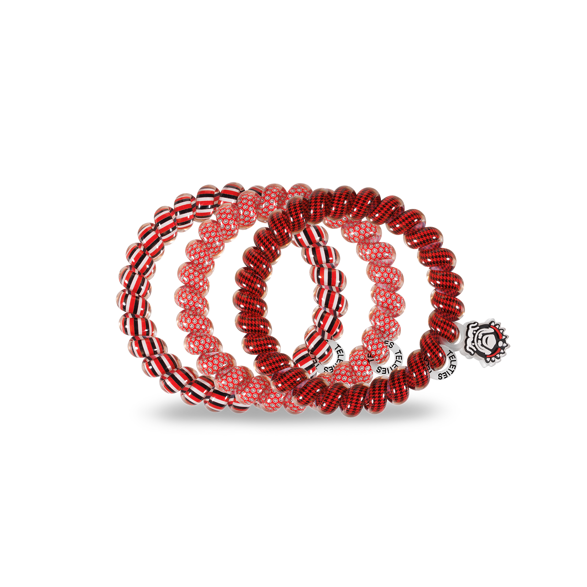 Hold your hair and enhance your collegiate style with the University of Georgia TELETIES. The strong grip, no rip hair tie that doubles as a bracelet. Strong, pretty and stylish, TELETIES are designed to withstand everyday demands while taking your look to the next level. Go Dawgs!